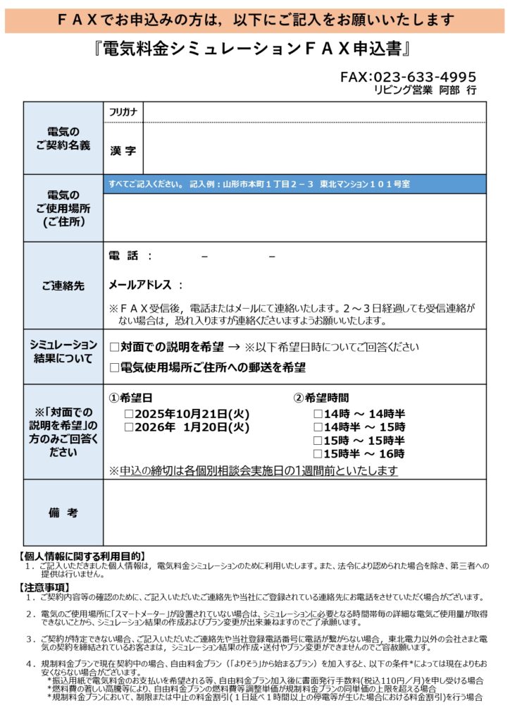 東北電⼒とご契約されている⽅々向けの個別相談会を開催します。