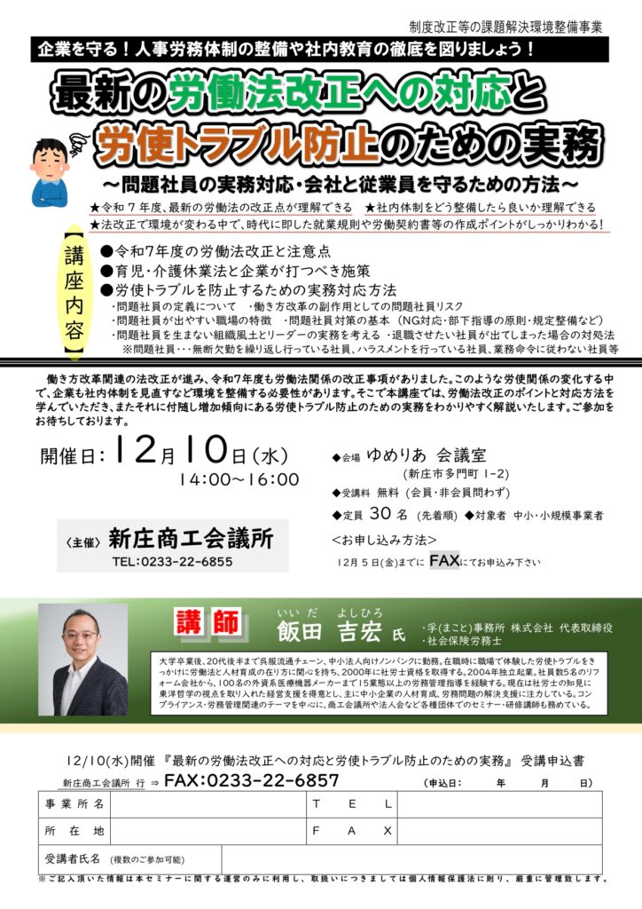 | 添付ファイル | 1210-労働法改正セミナーチラシ.pdf |