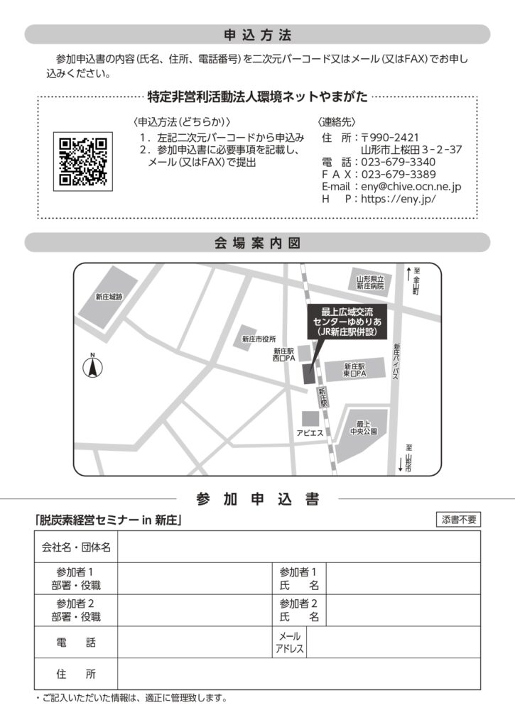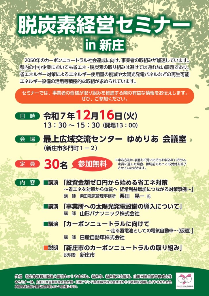 | 添付ファイル | 脱炭素経営セミナーin新庄_案内チラシ.pdf |