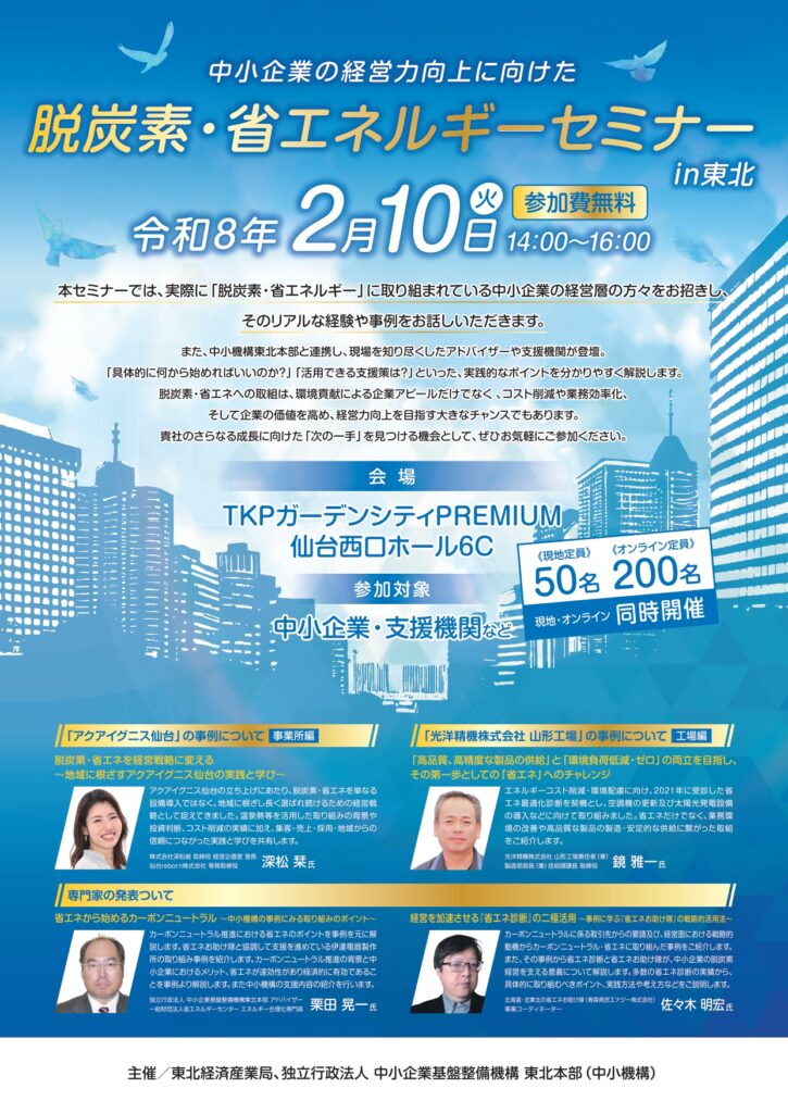 「脱炭素・省エネルギーセミナーin東北」が開催されます。